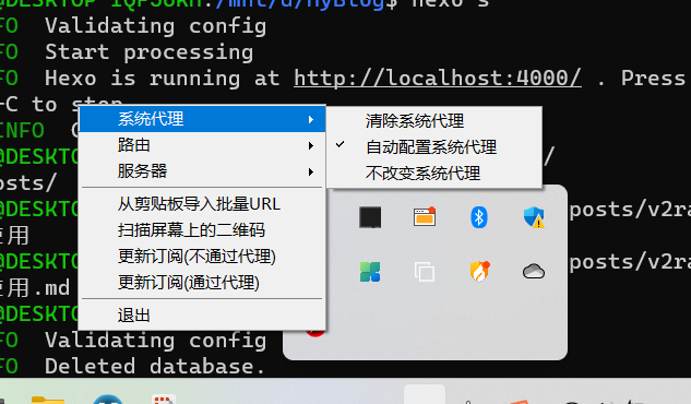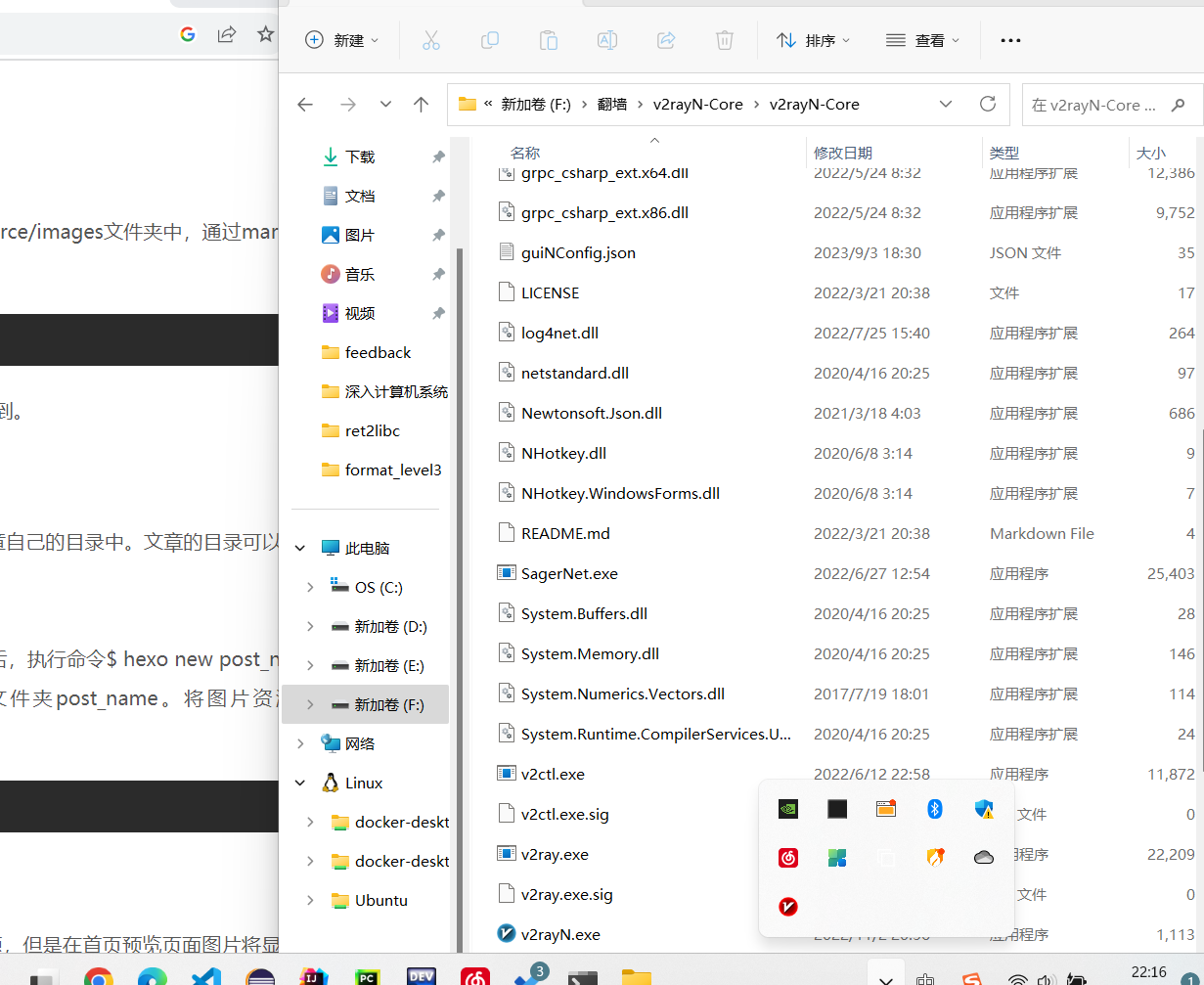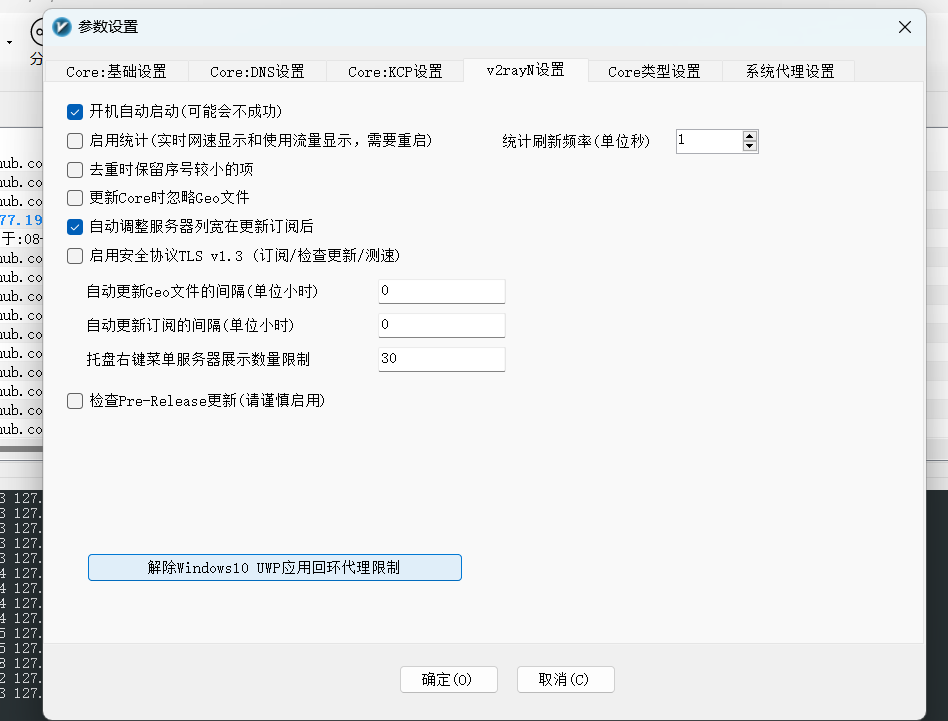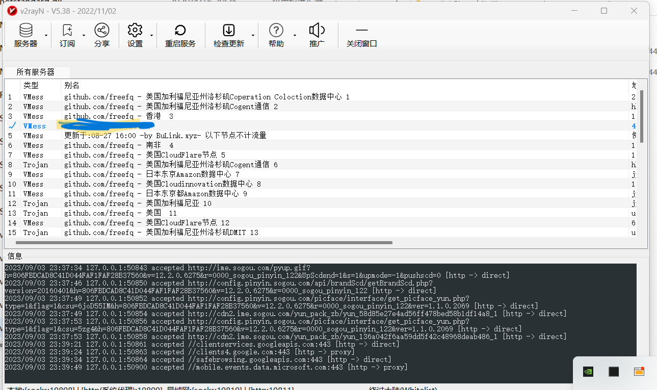 v2rayN 使用 hx294 2023-09-02 | 阅读: 次 计算机网络 梯子 介绍一下v2rayN的使用方法 v2rayN 启动首先打开文件夹,启动程序: 显示小图标,未配置好是蓝色,配置好的v2rayN是红色的,可以双击打开: 粘贴服务器点击空白处,将复制的vmess服务器,粘贴(ctrl-v)到此处 配置参数第一步:第二步:第三步: 第一次写博客,希望以后能写的更好。